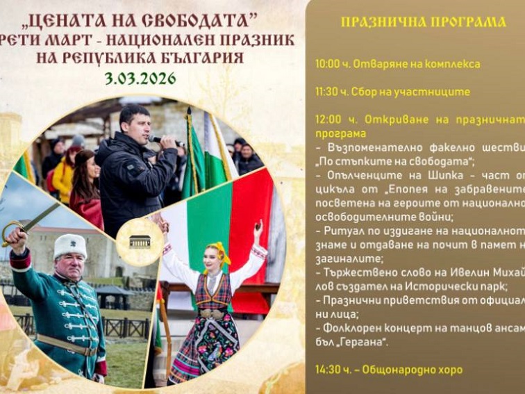 Празникът намира отклик и в Историческия парк, където от години се организира богата програма под мотото „Цената на свободата“. Там, сред реконструкции на българското минало, посетителите могат да преживеят: